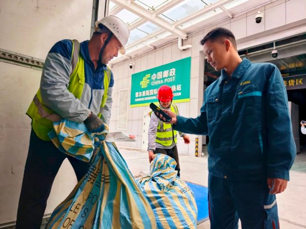当游客们满载而归时,霍尔果斯综合保税区的国际邮件交换站里,则是另一番热火朝天的景象。