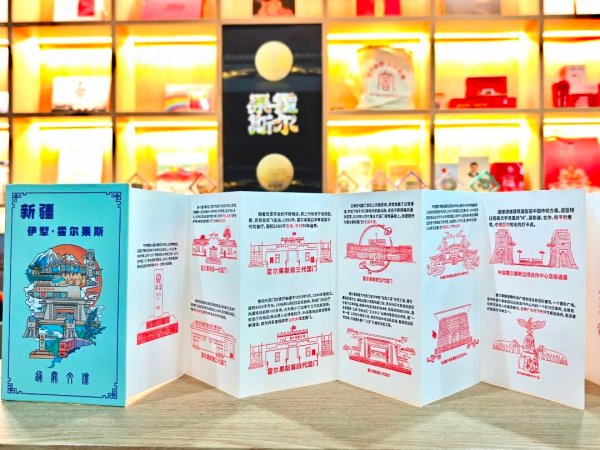 走进邮局,仿佛打开了一个浓缩了霍尔果斯风情的“珍宝匣”。国门造型的冰箱贴、印有界碑图案的明信片、汇聚当地风光的手绘地图……每一件文创都凝聚着巧思,让游客爱不释手。