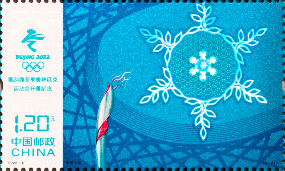 中国邮政定于2022年2月4日发行《第24届冬季奥林匹克运动会开幕纪念》纪念邮票一套2枚,邮票图案名称为共向未来、希望之光。全套邮票面值2.40元。邮票计划发行数量为1150万套。